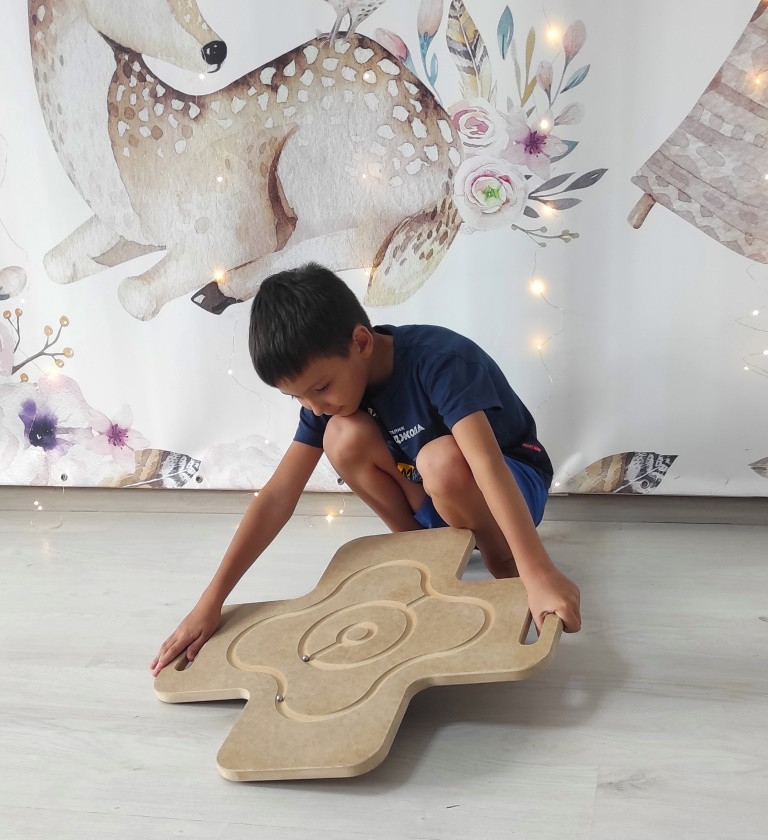 Дитячий баланс борд лабіринт – це найкращий тренажер для розвитку фізичних здібностей дитини. Намагаючись утримати рівновагу під час гри, діти покращують поставу та зміцнюють м'язи. На дошці є вирізаний лабіринт, в якому котиться металева кулька. Вставши на баланс борд, дитина намагатиметься викотити кульку з лабіринту, не помічаючи, як її м'язи тренуються самі собою. Це чудове поєднання цікавої гри та корисних занять.