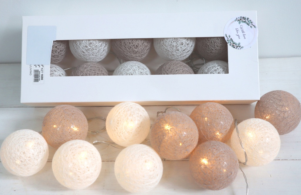 Тайські гірлянди кульки - це чарівні тайські гірлянди ручної роботи з бавовняної нитки, що випромінюють тепле приємне світло. Завдяки своїй простоті ці гірлянди закохує в себе не тільки люблячих мам, які хочуть прикрасити в дитячій кімнаті свого малюка, наприклад, вігвам або ліжечко, але і професійних декораторів, що шукають креативні ідеї для дизайну інтер'єру, і нас з вами, тих хто любить створювати затишок і красу у себе вдома.
